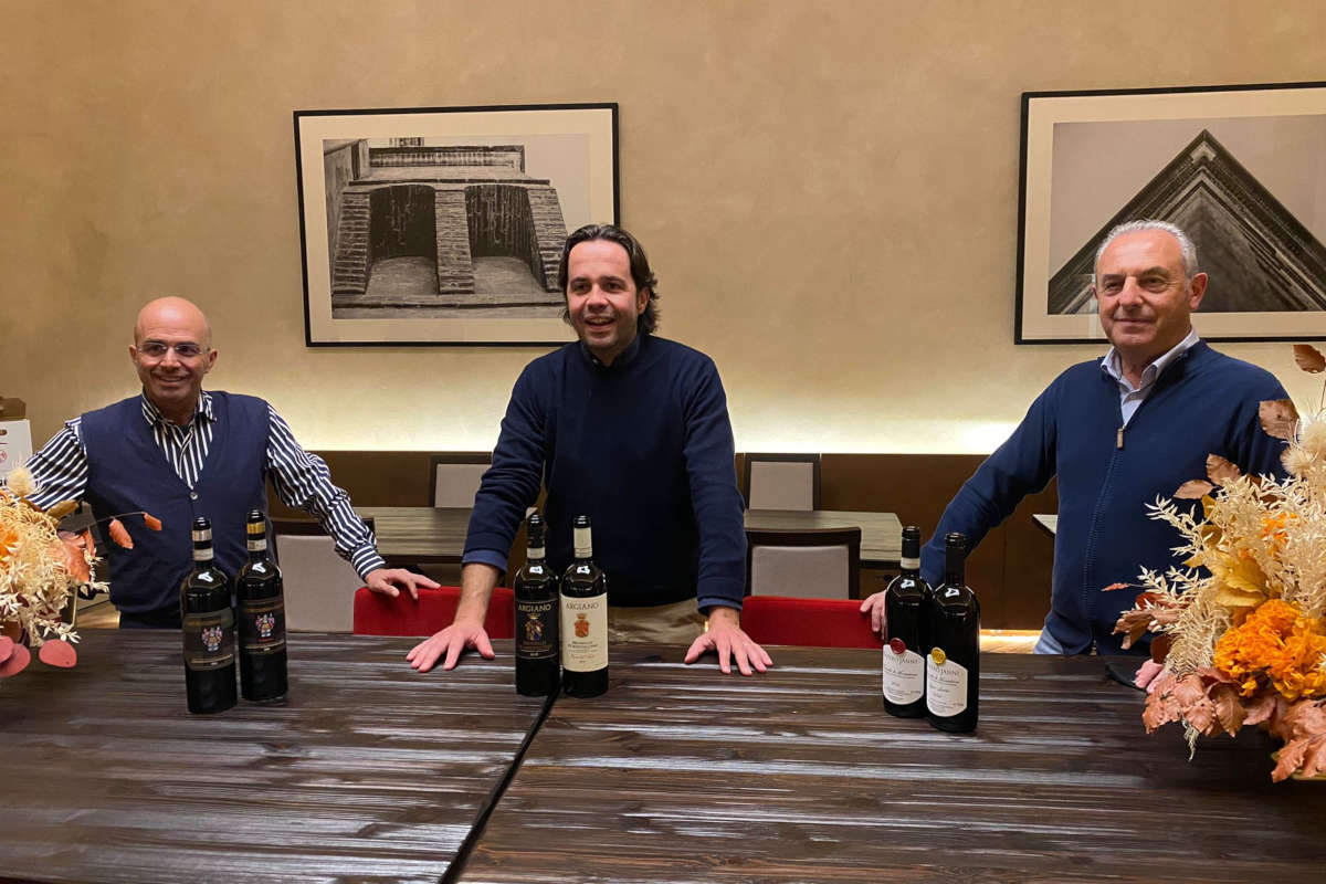 In Mastrojanni infatti, al nostro arrivo, sono già presenti Paolo Bianchini, a capo di Ciacci Piccolomini d’Aragona, e Bernardino Sani, amministratore delegato di Tenuta di Argiano. Il padrone di casa Andrea Machetti, amministratore della Mastrojanni (azienda del gruppo Illy), ha aperto le danze della pace ospitando tutti per un pranzo nel quale i due giovani chef della tenuta, Raniero e Sara, hanno dato prova di grandi capacità. E si sa che il buon cibo è da sempre uno strumento di pace. Ad accompagnare il tutto, il Rosso di Montalcino annata 2019 delle tre aziende. Etichette che, seppur ciascuna con uno stile diverso, esprimono bevibilità e raffinatezza, ma anche un grande carattere, a dimostrazione di come questo vino sia concepito sempre meno come “cadetto” del Brunello e sempre più come espressione autorevole del territorio.