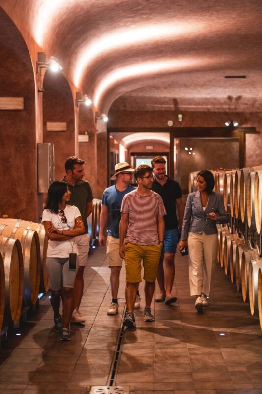 L’esperienza in realtà virtuale è affiancata da un tour fisico guidato tra vigne, cantina di vinificazione e barricaia, per poi culminare nella degustazione dei vini più iconici dell’azienda: