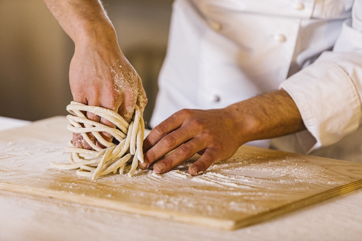 Grande attenzione anche all’esperienza in cucina: la Cooking Class è un viaggio immersivo che parte dall’orto biologico della tenuta, dove si raccolgono gli ingredienti freschi, per poi passare in cucina e preparare pasta fatta a mano e piatti tipici della tradizione toscana. Un momento conviviale che unisce il piacere della cucina alla filosofia agricola di Avignonesi, con un calice in mano.
