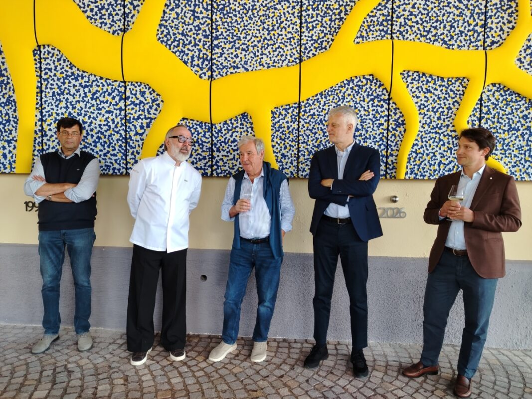 Da sinistra: Joseph Romen (enologo), lo chef Norbert Niederkofler, Stefano Marzotto, il ceo Andrea Conzonato e Alessandro Marzotto