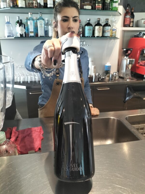 Innanzitutto, si tratta di viticoltura eroica, quella d’alta quota, e di uve che sono perfette sia per essere trasformate in vini fermi sia per la spumantizzazione metodo classico. L’altitudine ha la sua importanza, perché quella dei vigneti di Morgex e La Salle ha la valenza della latitudine nello Champagne. Nascono così le “bollicine dei ghiacciai”, prodotte in base alle classiche tecniche di spumantizzazione messe a punto a partire dal 1700 nello Champagne, applicate dalla metà del 1900 in Savoia e a partire dal 1983 in Valle d’Aosta dalla cantina di Morgex e La Salle, che può vantare il fatto di essere l’unica azienda in Valle d’Aosta a produrre spumante metodo classico a denominazione di origine controllata. Il prodotto-icona di questa spumantizzazione tra le nevi eterne è rappresentato dalla Cuvée des Guides, dedicata alle guide alpine di Courmayeur: dal 2003, guide e cantina si sono incontrate per vinificare il Prié Blanc, vitigno autoctono valdostano, oltre i 2000 metri con una spumantizzazione in quota e dal 2015, grazie alla collaborazione di Sky Way Monte Bianco, è stata creata una vera e propria cantina ai 2173 metri del Pavillon du Mont Fréty, dove ogni anno condizioni particolari di altitudine, pressione atmosferica e temperatura danno vita alla Cuvée des Guides, spumante metodo classico dalle caratteristiche uniche e rare.