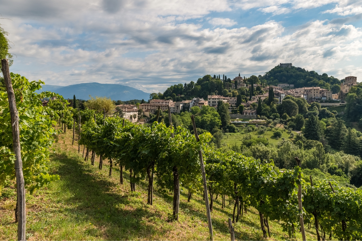 Asolo, “città dai cento orizzonti”, uno dei borghi più belli d’Italia, territorio del vino in forte ascesa grazie al fenomeno Prosecco che qui, sulle colline tanto amate dagli inglesi e non solo da loro, è presente come Superiore e prende il nome di Asolo Prosecco Dogc. Tra le cantine portabandiera di questa denominazione spicca Dal Bello, per qualità e per storia. Si tratta di uno dei produttori più consolidati, essendo un’azienda fondata nel 1906, gestita oggi dalla terza generazione della famiglia Dal Bello, rappresentata da Mario e Antonio Dal Bello e con la quarta già inserita con funzioni rilevanti, nella figura di Chiara e Jacopo Dal Bello. L’enoturismo è una realtà altrettanto consolidata e da tre anni può contare su un plus davvero unico: si tratta del Primo Percorso della Viticoltura Asolana.
